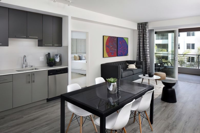 Dive into our top-tier amenities, including a sparkling pool and spa, a vibrant game room, cozy lounge areas, and a breathtaking sky deck. The luxury continues inside your apartment with stainless steel appliances, an in-unit washer and dryer, and your own private balcony.